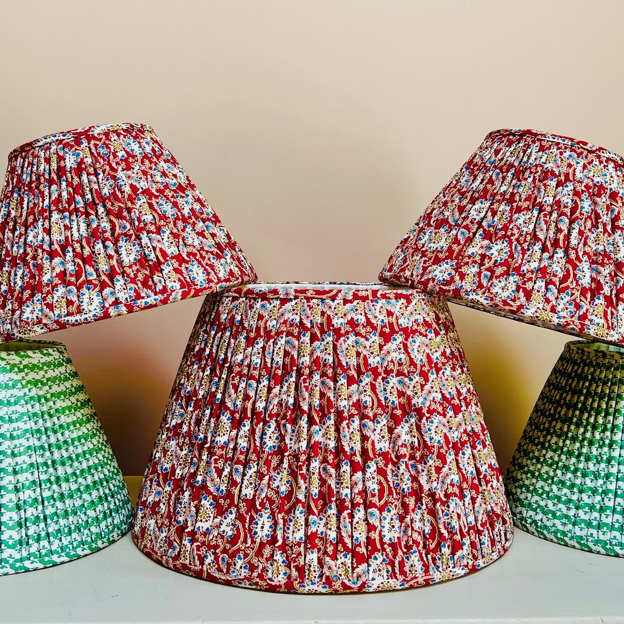 18" Pembroke Red & White Cotton Gathered Lampshade